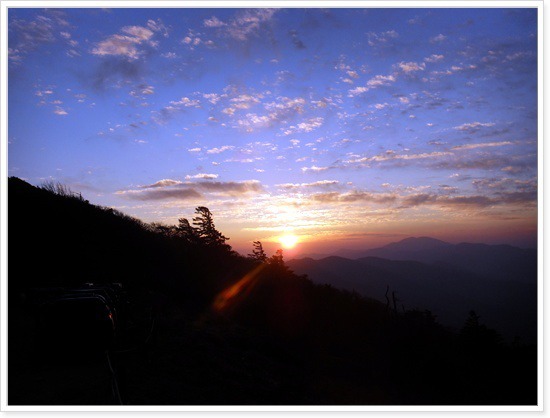 한꺼번에 두 마리의 토끼를 양손에 거머잡았습니다. 장터목 벤치에 앉아 최상의 기분으로 붉게 불타오르는 반야봉 하늘을 바라보았습니다. 대한민국 남단 최고봉 천왕봉에서 3대가 덕을 쌓아야만 볼수 있다는 지리 제1경 천왕봉 일출을 가슴 벅찬 감동으로 받아들였습니다.