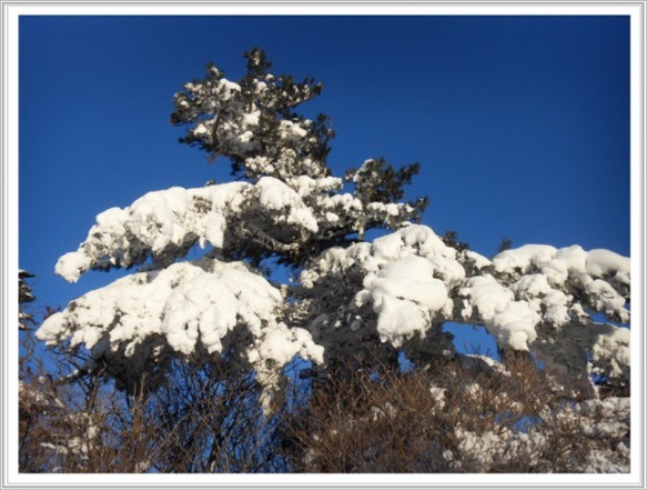 나는 너무 좋은데 나무가 힘들어 보입니다. 어제 내린 폭설이 무거운 짐이 되어 버렸습니다. 봄이 와야만 그 짐을 내려 놓을 것 같습니다.