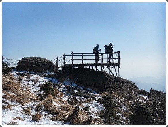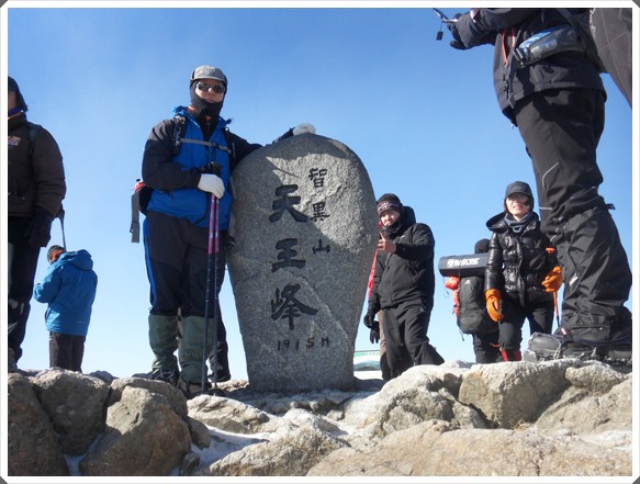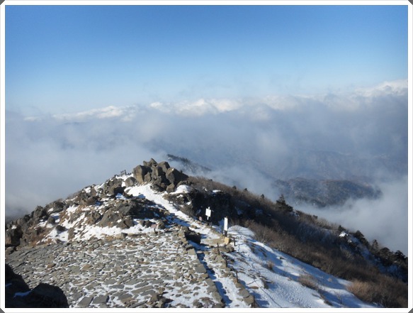 매서운 칼바람으로 이마빡이 띠~잉 해옵니다. 구안와사 오는 줄 알았습니다. 시골장터 북새통 속에서 수요산악회는 천왕봉 정상석을 배경으로 개인, 단체의 인증 샷을 남기는 끈기를 보였습니다.