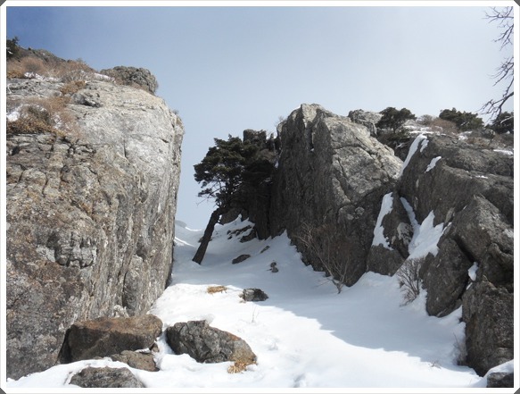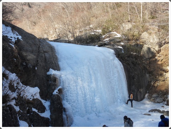 말로 설명할 수 없는 황홀함에 젖어 듭니다. 유암폭포 앞에서 말입니다. 남자에게 좋긴 좋은데 말로 표현이 안 된다는 그 광고 마냥 어떻게 설명해야 세상에서 최고라는 것을 표현할지 모르겠습니다. 아주 깜빡 죽여줍니다. 겨울이 물방울을 이용하여 거대한 수정 덩어리를 만들어 냈습니다. 때맞추어 넘어가는 햇살을 받아 코발트색 하늘빛과 잘 어우러져 그 색마저 영롱한 빛을 띱니다. 한 조각 따다 물어 보았습니다. 입속에 달콤한 향기가 머뭅니다. 이 또한 지리산이 내리는 선물입니다.