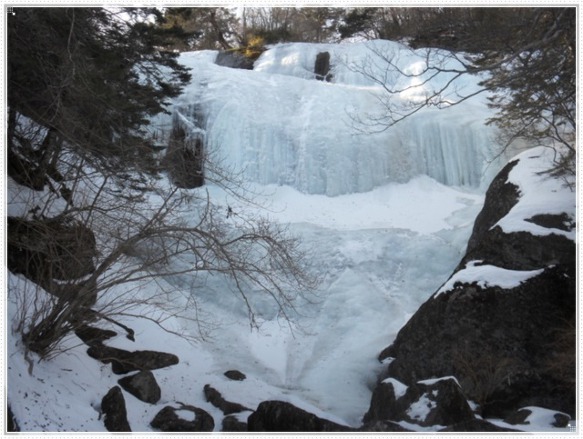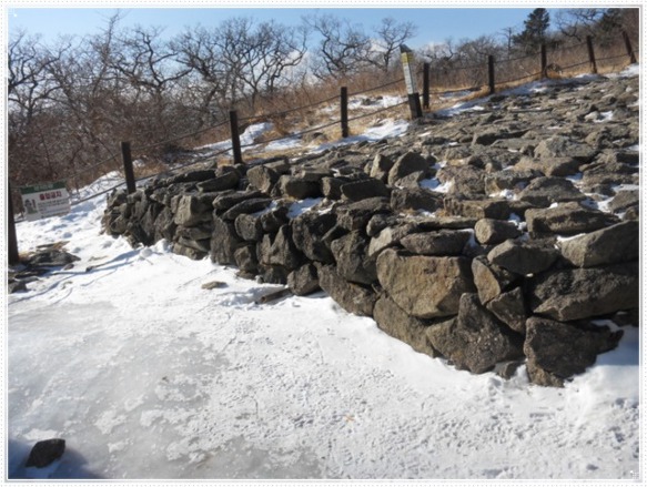 종주길의 유일무이한 무재치기폭포(14:30)는 거대한 얼음 덩어리가 되어있습니다. 지난주의 유암폭포와는 분위기가 전혀 다릅니다. 가까이 접근하니 얼음 속에서 졸졸 물 흐르는 소리가 들려옵니다. 올겨울 유난히 기승을 부리던 긴 추위에도 오는 계절은 버티지 못하는 모양입니다. 아니라 해도 이미 봄은 우리 곁을 살금살금 다가오고 있었습니다.