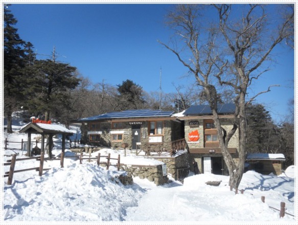 내려가는 길에는 지난밤 치밭목대피소에서 얼어 죽을 뻔했다며 천왕봉을 찍고 중산리로 하산하겠다는 산님 한분 달랑 만났을 뿐 아무도 이 길을 오르는 사람은 없었습니다. 어째 우리 발걸음이 빨랐는지 치밭목대피소(13:02)에서 우리보다 앞서 내려가는 산님 세분을 따라 잡았습니다. 대피소 지기는 이전의 젊은 친구가 아닌 연세 지긋하신 두 분으로 바뀌었고 강아지 보리는 사람이 많이 그리웠는지 날 보고 꼬리를 살래살래 흔들며 다가옵니다. 치밭목대피소에서 끓이는 라면은 그 어느 곳보다 한 맛을 더합니다.