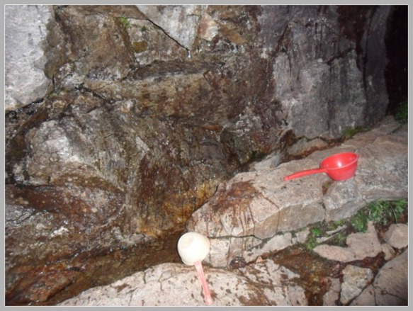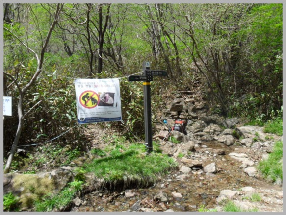 수 분후에 청학동과 낙남정맥 갈림길이 나오고 낙남정맥 가는 길은 국공에서 나뭇가지로 막아놓았습니다. 그리고 또 수분이 지나고 나니 반가운 샘터가 나옵니다. 오래간만에 세수도하고 고생한 발을 물속에 담가봅니다. 시원하기가 말로 표현할 수가 없습니다.