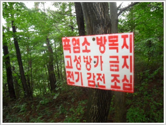 염소방목지, 고성방가금지, 전기감전조심이라는 경고판을 살아있는 나무에 대 못질로 요소요소에 설치해 놓았습니다. 또 있습니다. 오두재 근처에는 고사리 재배지역이라며 온산의 나무들을 댕강 댕강 잘라놓아 천혜의 심산유곡들이 거의 민둥산으로 전락 되어있습니다. 몇몇의 사람들이 살자고 동식물들의 보금자리가 훼손되고 우리 후손들의 재산인 자연이 송두리째 망가져 나가는 모습이 안타깝기 그지없습니다.
