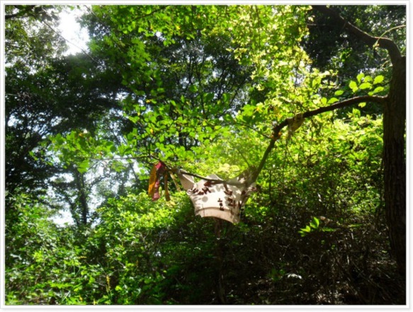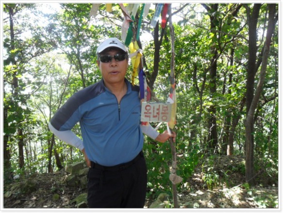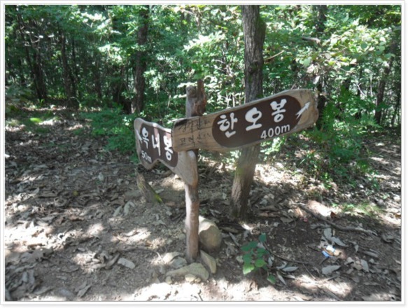 쑥재는 누군가 매달아 놓은 하얀 시그널만이 쑥재(10:55)임을 알려줍니다. 옥녀봉 오르는 길이 무척 힘듭니다. 옥녀봉 갈림길(11:53)에서도 여느 곳과 마찬가지로 산타나와 고집통만이 옥녀봉(11:58)을 찾기로 하였습니다. 약 50m 근처에 옥녀가 다소곳이 자리 잡고 있었습니다. 거제도에만 옥녀봉이 네 곳이고 인근 통영에도 한산도, 사량도등에 있듯이 우리나라에는 헤아릴 수 없을 정도의 옥녀봉이 많이 있는데 나름 그 이름을 갖기까지는 여러 가지 사연이 있을 것 같습니다. 지도상에는 한오봉(12:22)이라는 산은 없지만 정상 표지 목은 있습니다. 첫 번째 편백나무밭(12:30)을 지납니다. 두 번째 편백나무 밭에서는 피톤치드 마셔가며 점심식사를 하기로 합니다. 옛 속담에 처서가 지나면 모기주둥아리가 삐뚤어진다고 했거늘 이곳 모기는 어째 이리도 다리며 팔을 물어뜯는지 모르겠습니다. 속담을 전혀 모르는 신세대 모기들인가 봅니다.