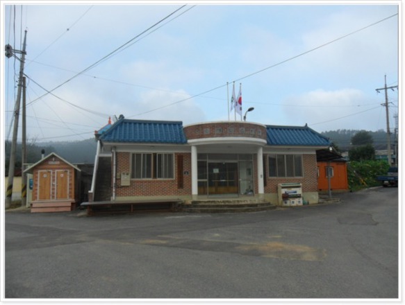 17번국도 횡단보도를 건너니 슬치마을회관(7:40)이 있습니다. 우리의 기자 산타나가 서운해 할까 봐 단체사진의 모델이 되어줍니다. 마을회관 오른쪽 골목길로 올라가는 우릴 불쌍하다는 표정으로 개와 닭, 소들이 물끄러미 쳐다보고 있습니다. 감자골로 유명한 강원도 태생이면서 낼, 모레면 오십 줄이 다된 고고가 길가 콩밭의 콩잎을 감자 이파리라 합니다. 그 연세에 감자 모르고 콩 모르면 안 되는데... 허허 웃습니다.