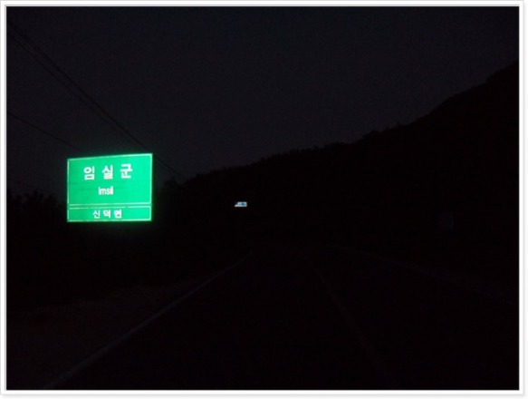 작은불재를 지나고 440봉(18:33)을 지날 즈음에는 건너 모악산으로 해가 늬엿늬엿 넘어가고 있습니다. 야간산행을 대비하지 않은 것은 아니지만 벌써 예상시간 10시간을 훌쩍 넘기고 있는 것입니다. 호남정맥을 시작하면서 주간 산행만을 생각하고 계획하였었는데 이렇게 되면 향후 일정을 심각하게 고민해봐야 될 것 같습니다. 520봉(18:50) 정상 바위에 올라앉아 또 눈앞의 삼각뿔을 걱정하고 있었습니다. 일행들의 체력은 고갈되고 내 오른쪽 무릎관절에 없던 통증이 생기고 어스름은 내려앉기에 정말 걱정이 됩니다. 그런데 유심이 바라보니 우리가 앉아 쉬고 있는 바로 아래 꾸불꾸불 차도가 보입니다. 오늘 넘지 않아도 되는 삼각뿔인 것입니다. 희망을 가지고 약간을 이동하니 전망암이 나오고 영암부락재로 올라오는 꼬부랑 차도가 확연히 들어납니다. 안도의 한숨을 돌렸습니다. 전망암에서 내려가는 길이 아주 위험합니다. 이미 해는 넘어가고 랜턴 불빛에 의존하지 않고 내려갈 수가 없습니다. 임실군 신덕면 간판이 기다리는 영암부락재(19:15)에 파김치가 된 채 도착했습니다. 이번구간은 구간 마지막에 유난히 삼각뿔 형상의 높은 산들이 많았기에 더 힘든 산행을 한 것 같습니다.