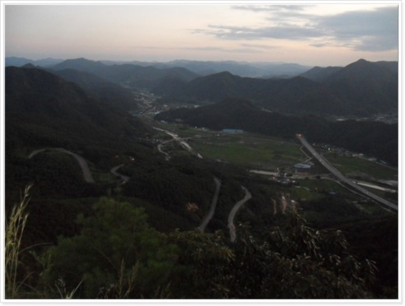 작은불재를 지나고 440봉(18:33)을 지날 즈음에는 건너 모악산으로 해가 늬엿늬엿 넘어가고 있습니다. 야간산행을 대비하지 않은 것은 아니지만 벌써 예상시간 10시간을 훌쩍 넘기고 있는 것입니다. 호남정맥을 시작하면서 주간 산행만을 생각하고 계획하였었는데 이렇게 되면 향후 일정을 심각하게 고민해봐야 될 것 같습니다. 520봉(18:50) 정상 바위에 올라앉아 또 눈앞의 삼각뿔을 걱정하고 있었습니다. 일행들의 체력은 고갈되고 내 오른쪽 무릎관절에 없던 통증이 생기고 어스름은 내려앉기에 정말 걱정이 됩니다. 그런데 유심이 바라보니 우리가 앉아 쉬고 있는 바로 아래 꾸불꾸불 차도가 보입니다. 오늘 넘지 않아도 되는 삼각뿔인 것입니다. 희망을 가지고 약간을 이동하니 전망암이 나오고 영암부락재로 올라오는 꼬부랑 차도가 확연히 들어납니다. 안도의 한숨을 돌렸습니다. 전망암에서 내려가는 길이 아주 위험합니다. 이미 해는 넘어가고 랜턴 불빛에 의존하지 않고 내려갈 수가 없습니다. 임실군 신덕면 간판이 기다리는 영암부락재(19:15)에 파김치가 된 채 도착했습니다. 이번구간은 구간 마지막에 유난히 삼각뿔 형상의 높은 산들이 많았기에 더 힘든 산행을 한 것 같습니다.