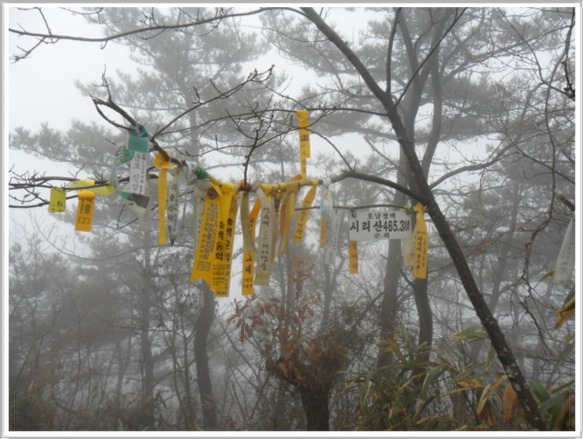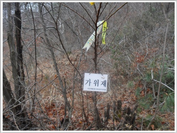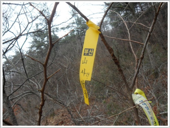 가위재(12:03)를 지날 즈음에서야 오전 내내 애먹이던 안개가 서서히 걷혀나갑니다. 지난번『똥벼락』에 이어 오늘은 『부산 산사람들』에 대해 연구해 보도록 해야겠습니다. 산행 중 이벤트도 없고 지역에 얽힌 설화도 없어 딱히 산행기에 적을 내용이 없으니 내게 훌륭한 가이드 역할을 해주는 시그널 한 개씩을 선택하여 분석해 보기로 하였습니다. 알바를 예방해 주는 이런 시그널들이 초행길인 내겐 무조건 감사할 따름입니다.