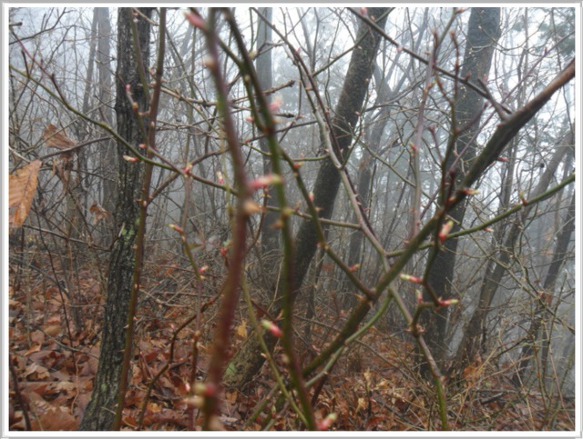 온수산(9:49) 정상을 지나고 시리산(10:06) 정상도 나옵니다. 봉화산(10:15) 오르는 등로에는 유난히 가시넝쿨이 많습니다. 가시넝쿨 또한 다른 식물보다 한발 앞서 봄소식을 전해줍니다.
