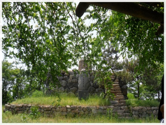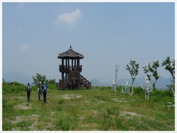 나라가 위급할 때 불을 지펴 조정에 알리는 봉수대가 깔끔하게 정돈된 봉화산(13:02) 정상에 올라섭니다. 낡은 태극기가 펄럭이고 있습니다. 2층짜리 팔각전망대와 군민들의 체력증진에 사용하라고 운동기구들이 널려 있습니다. 그 시절 보성 군수님이 뭘 잘했는지 치적을 기린 거대한 돌 비석도 세워져 있습니다. 그런데 곰곰이 생각해보니 이렇게 높은 곳에 올라와서 운동할 사람은 아무도 없을 것 같습니다. 대표적인 세금 낭비의 표본입니다.