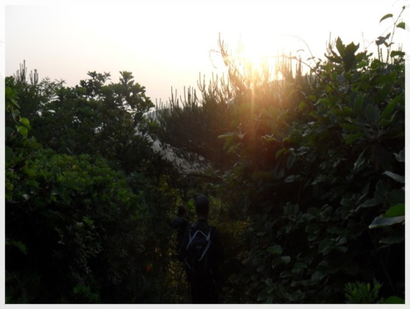 잠깐의 휴식을 취하고 골치를 지날 즈음 눈부신 태양이 떠오릅니다. 그러고 보니 여태껏 고개를 왼쪽으로 돌려 일출을 감상했었는데 오늘은 진행하는 정면에서 그 광경을 봅니다. 호남정맥을 타고 줄기차게 남으로만 내려오다 드디어 동으로 방향을 틀었습니다. 호남정맥도 남은 거리가 그리 많이 남지 않았나 봅니다.