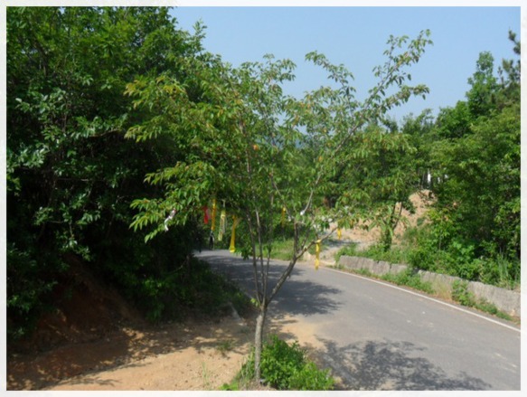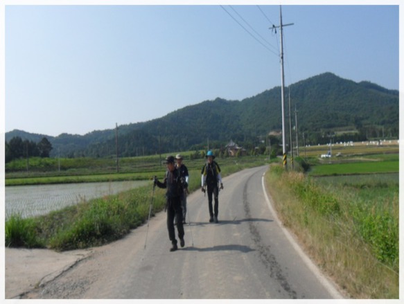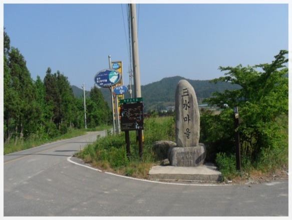우린 알바하지 않으려고 무던히 애를 썼습니다. 한치재(8:25) 도착하기 전 아미봉에서 좌측 길을 택해야 된다는 것을 모르는 바가 아니었지만 일행이 무려 네 명이나 되어도 아무도 그 아미봉을 보지 못하고 그냥 직진하고 말았습니다. 직진하였다고 해서 알바를 한 것은 아니고 한치재의 절개지로 인하여 옛길을 갈수 없어 삼수마을로 통하는 새로운 호남길까지 돌아서 왔다는 이야기입니다. 어쨌든 삼수마을로 가는 표지석이 있는 삼거리까지 가지 않아도 될 길을 약 1Km 정도 더 걸었다고 보면 되겠습니다.