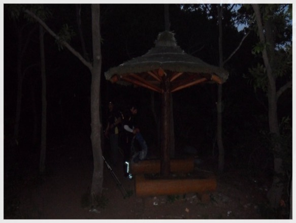호남정맥 열다섯 번째 접근지역 곰재(3:55)까지는 완만한 경사길이며 그다지 오랜 시간이 걸리지는 않습니다. 봄철이면 유명한 제암산 철쭉제는 오리지널 제암산에서 하는 것이 아니고 지금 오르고 있는 곰재산(4:13)에서 시행하므로 곰재산정에다 거대한 철쭉제 제단을 갖추어 놓았습니다. 오른쪽 아래로 내려 보이는 장흥의 반짝이는 불빛들이 정말 아름답습니다. 반면 5월 철쭉시즌 그때 얼마나 많은 산님들이 족적을 남겼는지 등로에 쌓인 먼지가 포삭포삭 날아올라 퀴퀴한 흙먼지 냄새가 콧속을 어지럽힙니다. 인근의 곰재산과 전혀 성격이 다른 완전 바위산인 사자산에 오르는 일이 만만찬습니다. 어느덧 새벽은 밝아오고 나무 데크 전망대가 보이는가 싶더니 사자산(4:40) 정상에 올라서게 됩니다.