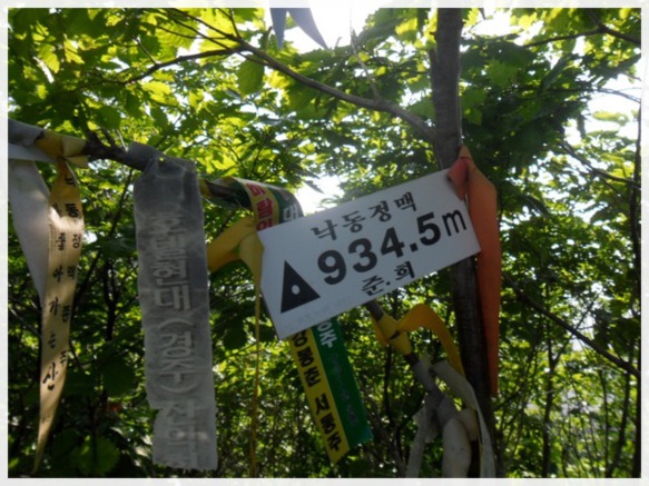 헬기장이 있는 934.5봉(6:52)에는 눈에 익숙한 준. 희의 안내 표지판이 있어 호남정맥에 이어 이곳까지 도움을 주시는 그 분에게 아주 감사하는 마음을 전하고 싶습니다.