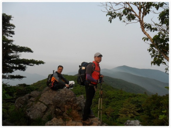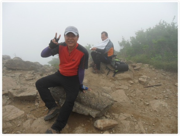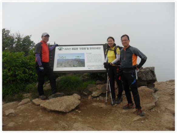 매번 토끼봉 오르는 일은 참말로 힘듭니다. 순천 효천고등학교 강형순선생님과 앞서거니 뒤처지거니 하면서 안면을 익혀갑니다. 명선봉 오름길에는 거의 녹초가 됩니다. 연하천대피소에서 약간의 휴식 과 함께 물통을 채우고는 다시 발걸음을 옮깁니다. 형제봉 소나무는 아직도 꿋꿋이 자리를 지켜 멋진 자태를 뽐내고 있고 천왕봉을 찾아보라는 간판이 있는 전망바위에서는 희뿌연 안개구름이 시야를 방해합니다.