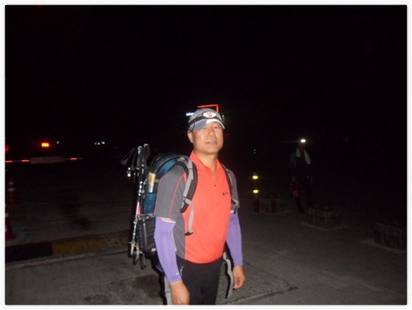 백무동의 야심한 새벽 3시에 장터목펜션 사장님이시면서 백무동 택시기사이신 이봉수님의 단잠을 깨웠습니다. 펜션에 주차를 하고 백무동으로 내려오면 자동차가 있는 곳으로 바로 하산이 되며 무엇보다도 이틀 동안의 주차비가 무료이므로 일거양득의 효과가 있습니다. 택시가 성삼재에 도착하니 밤을 잊은 산님들로 북적입니다. 그들 틈 속에 우리 세 사람도 지리산 종주의 뜻을 품고 이마등 불 밝히고 보무도 당당한 발걸음으로 성삼재를 출발합니다.