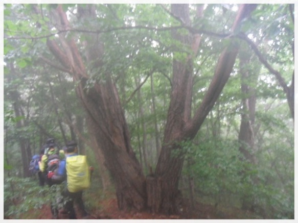 어제 내려온 애미랑재(5:25)에서 산행이 시작되고 깎아지른 절개지를 치고 오릅니다. 이번 정맥길은 지난 차수와는 달리 등로가 아주 깔끔한 편이고 아름드리 금강송이 유난히 많이 자라고 있습니다. 어제 고도를 많이 나췄으니 당연히 오늘 많이 올라야 합니다. 기상청에서 불볕더위가 올 것이라 예보했지만 이곳은 워낙 고지대여서인지 온 산이 안개 속에 갇혀 버렸고 칠보산(6:40) 정상에 올랐으나 조망은 전혀 없습니다. 새신고개(7:16)에서 잠시 휴식을 갖고 내가 태어나서 본 최고로 아름다운 소나무 10지 춘양목(8:17)이 있는 곳까지 거의 마라톤 수준으로 달립니다. 나무 가지가 10지라서 이름 붙여진 모양인데 가지가 그 보다 훨씬 많아 보입니다. 정말 아름답습니다.