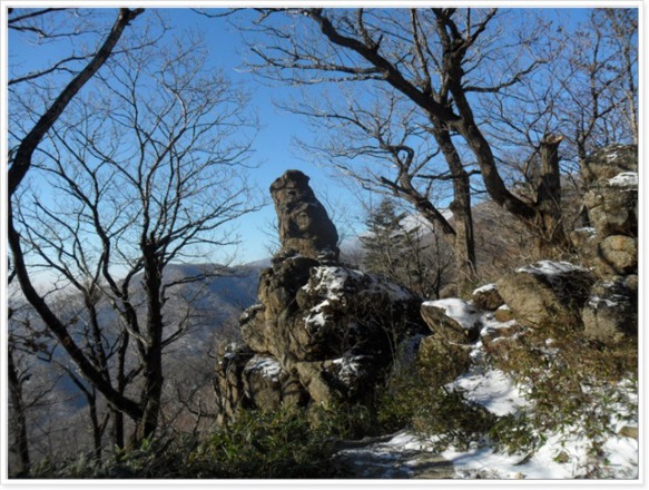 개선문 근처에는 아이젠을 착용하지 않고는 도저히 오를 수가 없습니다. 멀리 연하봉은 구름과 함께 기막힌 조화를 만들어가며 여러 가지 그림을 그려냅니다.