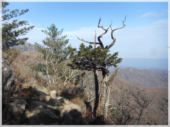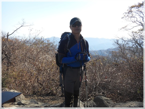 경주에서 오신 조석보님과 걸음을 맞췄습니다. 내리막길에서 약간 어려워 하셨지만 같이 이동하는 데는 큰 무리가 따르지 않았습니다. 이런 장거리 산행에서는 홀로 아리랑 보다는 누군가와 발을 맞추고 말을 섞어 가며 걷는 일이 최고의 산 벗이라 할 수 있겠습니다.