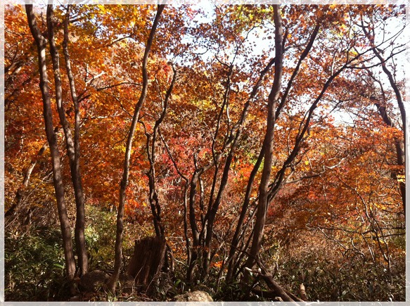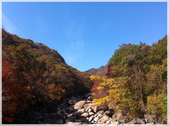 꺄~~~~~~악! 내 입에서 틔어 나온 소리입니다. 무의식 중에 사람의 입에서 이런 소리가 나올 수 있다는 것을 처음 알았습니다. 새재 삼거리 주변의 숨이 멎을듯한 단풍들 때문입니다. 조금 전 폭포 주변 만 했어도 나무들이 앙상한 가지로만 남아 있었는데 이 곳은 별천지입니다.