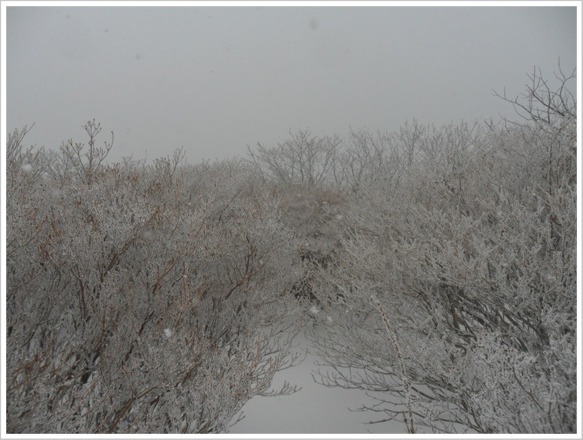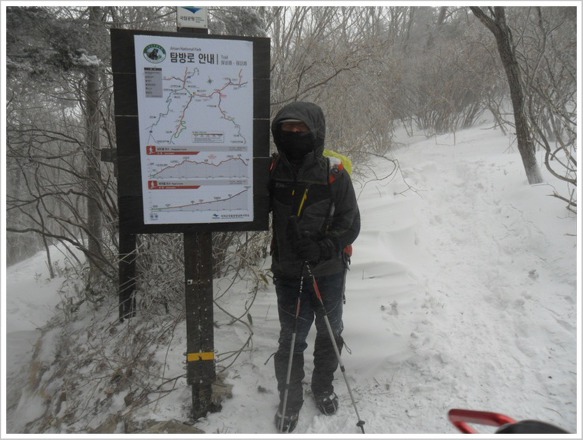 소위 말하는 이마빡이 쪼개질듯한 소백산 칼바람을 겪어보지 아니하고는 칼바람을 논해서는 아니 됩니다. 그 소백산 칼바람을 백두대간 하면서 맛보고 무려 5년이 지나서야 가장 강렬한 칼바람을 지리산 노고단 정상에서 또 맛보았습니다. 눈보라를 동반한 바람이기에 얼굴이 따끔거리고 눈을 뜰 수 없었으며 거의 폭풍 급 바람세기에 자칫하면 저 아래 구례 땅으로 날아갈 뻔 하였습니다. 유식한 말로 폭풍한설이었습니다.