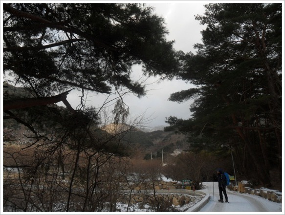 성삼재나 시암재까지 길이 미끄러워 버스가 올라오지 못하기에 성삼재에서 가장 가까운 당동마을로 하산해야 한답니다. 성삼재에서 바래봉 오르는 길로 약간 이동하다 당동삼거리에서 좌측으로 바로 내려갑니다. 그 길은 약간 과장을 하면 수직으로 내려 꼽는다고 하면 되겠고 나 고집통은 이 길로는 처음 가보는 길입니다. 버팔로가 잠깐 방심하는 새 미끄러져 엉덩방아를 찧는 바람에 깜짝 놀랐습니다. 휴~~.