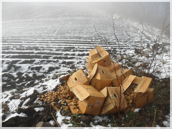 서서히 고도를 높이니 세상이 온통 하얗게 변해있습니다. 숲재에 비가 내릴 때 부산성 정상에는 눈이 내렸던 것입니다. 고랭지 채소밭에 밭갈이를 끝내고 씨 감자 담은 종이 박스를 밭두렁에 올려놓았건만 하얗게 눈이 덮여버려 감자파종은 아무래도 무리입니다. 4월하고도 하순에 눈이라니 말도 안 되는 이야기지만 현실이 눈앞에 있습니다.