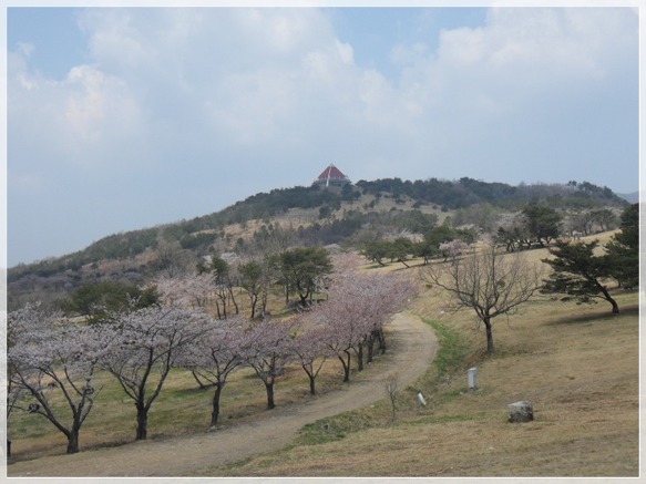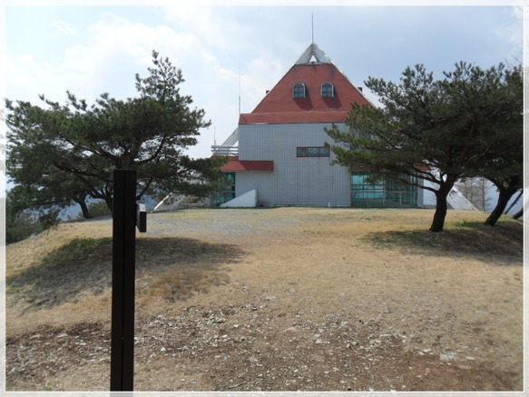땅고개 휴게소(9:49)에는 단석산을 찾아오는 산님들로 시끌벅적 합니다. 경주시 소재 단석산은 800m급의 제법 높은 산으로써 신라시대 때 화랑 김유신이 바위를 검으로 내리쳐 반으로 갈랐다 하여 이름이 유래되었다 합니다. 울산 불루산악회 회원님들이 단석산 오르는 등로에 쫙 늘어섰습니다. 오르막길 오르는 일 자체도 힘든데 그 많은 산님들 추월해야 하는 일이 더 더욱 힘이 듭니다. 단석산 또한 낙동길에서 약간 벗어나 있어 당고개 갈림길(10:40)에서 OK그린 목장으로 방향을 틀었습니다. 피라미드형 OK그린전망대(12:00)의 특이한 모습이 눈에 띄고 넓은 잔디밭이 나타납니다. 본래 만든 목적이 골프장인지 목장인지 구분은 잘되지 않지만 아주 넓으면서 조경이 무척 잘 되어있습니다.