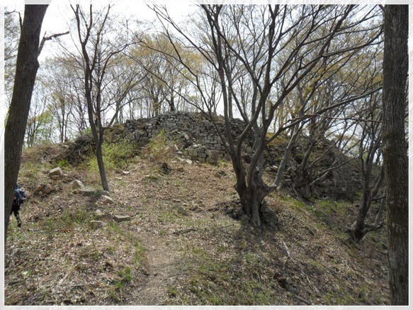 백령고개(11:09)의 넓은 주차장에 우리가 타고 왔던 미니 대경이가 있습니다. 예상보다 날씨는 더워 백령정 옆 포장마차 가게에 들러 시원한 맥주 한 통씩을 벌컥벌컥 마셨습니다. 6.25전쟁 당시 퇴로가 막힌 빨치산이 백암산을 거점으로 하여 치열한 전투를 벌이던 곳이며 민관군 합하여 2,563명이라는 많은 희생자를 남겼다 합니다. 여기 백령고개에 전승탑을 세우고 바로 아래 충혼비와 참전 공적비를 나란히 세워 그 영혼을 달래고 있습니다. 전승탑을 돌아가면 백제말기에 축조하였다는 금산백령산성이 있으며 성루가 무너진 채 방치되어있고 가운데는 움푹 패여 있습니다.