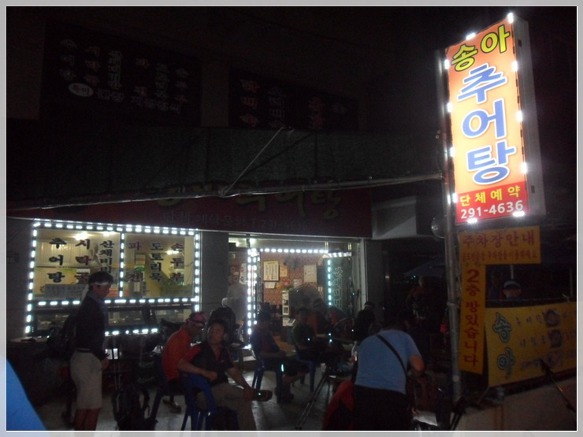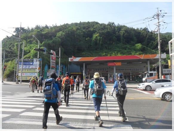 대단한 삼중이 회원님들은 아직도 쌩쌩한 모습입니다. 일행과 합류하여 엄광산(3:43) 정상을 찍고 구덕령의 꽃마을(4:00)에 내려서니 아침식사를 준비하는 송아추어탕집에는 불빛을 대낮처럼 밝혀 놓았습니다. 낙동길 마지막 졸업길에 삼중이 산악회 임원님들의 지원조가 부산에 와 있습니다. 나 고집통이 찜질방에 있을 때 개금고개에서 막걸리와 식수를 지원해주고 미리 꽃마을로 이동하여 힘겨운 낙동님들을 응원하고 있으니 모처럼만에 삼중이 산악회에서 착한 일을 하고 있습니다.