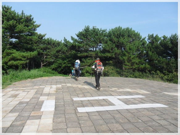 헬기장을 지나고 군부대 예비군 훈련장(8:04) 앞을 지나 감천고개에 도착하니 승용차로 이동해 온 지원조가 막걸리와 생수를 준비해 놓고 기다리고 있습니다. 목 마른 자의 숨통을 틔워 준 삼중이 산악회 임원님들이 무한하게 고마웠습니다. 대동중학교 앞을 지나고 다대포주유소(8:32) 앞 횡단보도도 건넜습니다. 그리고 구평가구단지도 지났습니다. 다송초등학교 앞 도로를 따라가다 신다대포아파트 입구(9:35)와 연결되는 육교도 건넙니다. 아미산 서림사에 올라가는 계단에서 잠깐 휴식을 취한 후 오늘 마지막 고지인 아미산 응봉 봉수대(10:10)에 올라서니 드디어 감천항과 몰운대가 보이기 시작합니다. 롯데캐슬 아파트단지(10:50)를 통과하는 데만 약 20분이 소요되는 것으로 보아 이름 그대로 롯데 성이라고 해도 되겠습니다.