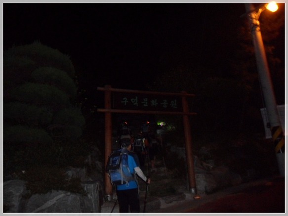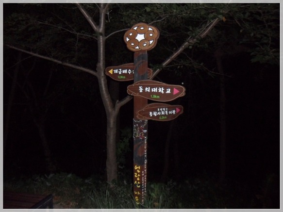 오늘 낙동정맥 졸업산행은 장장 40Km 거리이고 무박2일 일정으로 금정산성 산성고개에서 시작하여 몰운대까지 도착하면 대단원의 막을 내리게 됩니다. 저녁 7시에 거제를 출발한 버스는 부산시내 꽉 막힌 교통체증을 뚫고 9시 반이 되어서야 산성고개에 삼중이 정맥님을 쏟아 놓고 동래 온천장을 향해 내달립니다. 지 지난주 나 고집통은 개인적으로 산성고개에서 개금역 구간을 미리 진행해 놓았기에 나 홀로 개금역으로 이동하고 있습니다. 온천장 내려가는 꼬부랑길에서는 버스가 난리부르스를 쳐 멀미가 마구 밀려옵니다.