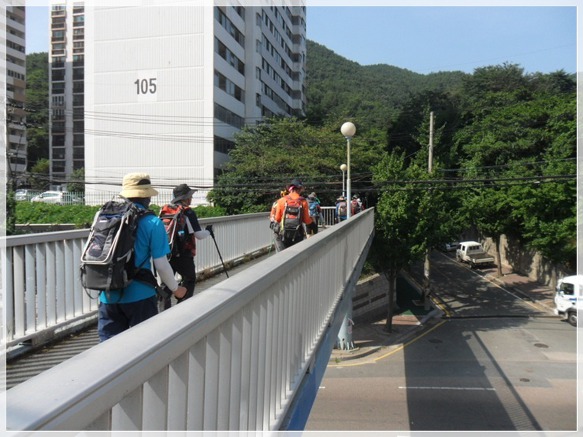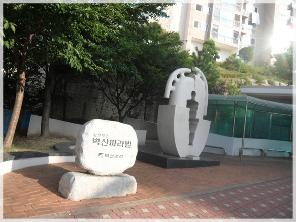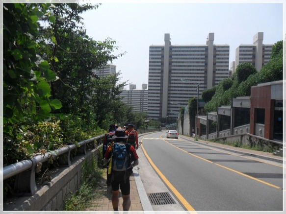 정말 잘 쌓아 올린 우정탑(6:59)을 지나고 괴정고개(7:28)에 도착하니 벽산파라빌 아파트단지가 낙동길을 가로막고 있습니다. 이번에는 아파트 단지 쪽문을 통해 단지 내로 들어가 아파트 계단을 타고 내려 지하주차장을 통과하고 다시 정문으로 빠져 나오는 해프닝이 벌어집니다. 제대로 된 정맥길을 알 수 없으니 가끔 4차선 도로를 무단 횡단하거나 밭두렁을 타기도하고 마을 골목과 아파트단지를 관통해야 하는 부산 도심의 낙동길은 산행이라 하기에는 거리가 약간 있는 그런 길입니다.