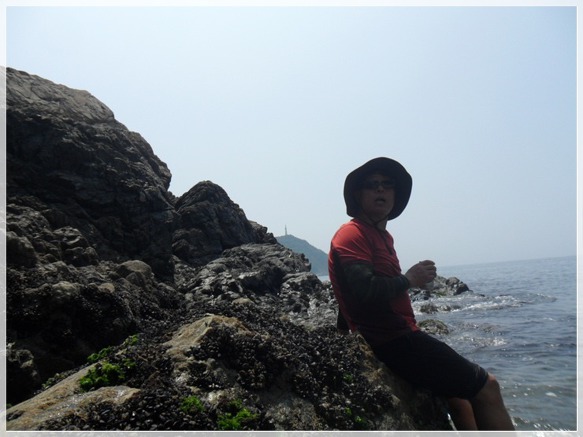 몰운대 아래 바닷물에 발을 담근 채 최종 퍼포먼스를 위해 아껴 놓았던 맥주 캔을 단방에 들이켰습니다. 시원하게 뚫린 남해 바다만큼이나 내 가슴도 시원스럽게 뻥 뚫립니다. 아직도 낙동정맥이 끝난 것이 아니었는지 다대포해수욕장 주차장으로 돌아오니 몰운대 표지석에서의 단체사진을 주문합니다. 삼중이 산악회에서 꼭 필요할 것 같아 기꺼이 모델이 되어 주었습니다.