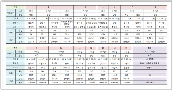 □ 산행시간/거리 : 185시간 09분 / 412.0 Km