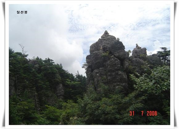 지금부터는 물론 내 앞에 가는 사람 없고 동행할 만한 사람 아무도 없습니다. 그냥 죽여주는 지리 경치를 사방 둘러보며 발걸음만 옮겨 놓을 뿐입니다. 엄청나게 몰려오는 산님들을 스쳐가며 영신봉(10:40), 칠선봉(11:25)을 지나 선비샘(12:25)에 다다르니 몇몇 산님이 쉬고 있습니다.