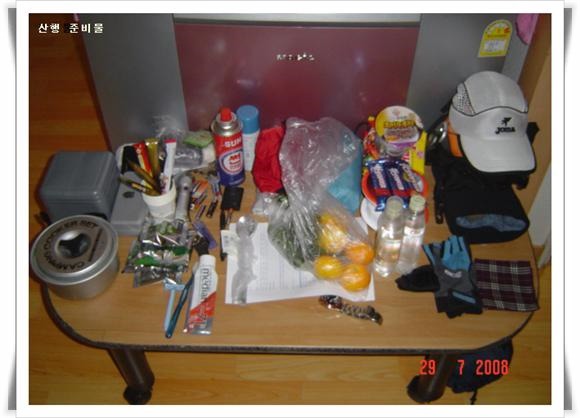 그래도 숙제는 해보고 싶으니 어쩔수 없이 작은 배낭을 준비해 침낭을 들어내고 소주, 맥주도 들어 낸 최소한의 양식만을 챙기고 비닐 5m만 꼬깃꼬깃 챙겨 넣고 날이 밝기만을 기다렸습니다.