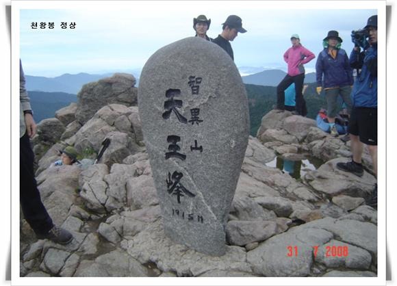 나 또한 항상 똑 같은 그 자세로 정상석 옆에 선채로 사진 한판 찍고 다음 목적지인 장터목 대피소로 향했습니다. 지금부터는 천왕봉을 뒤로 두고 아가씨들의 엉덩이를 연상케 하는 반야봉을 마주보며 하염없이 걸어야 할 것 같습니다. 항상 일출을 보기 위해 컴컴한 새벽 시간에 반대쪽으로만 올랐던 통천문(6:35)을 통과하고 고사목으로 유명한 제석봉(7:00) 쯤 내려서니 이제는 내려가는 길도 힘이 듭니다.