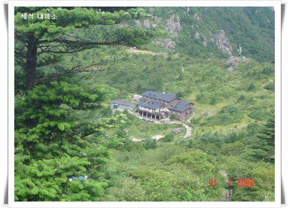 아니나 다를까 오늘도 여기는 역시 장터목(7:15)입니다. 아침인데 고기를 굽고 술판이 여기저기 벌어져 있습니다. 작은 속세를 이곳까지 옮겨 놓았습니다. 고생한 발을 들여다보니 내가 못할 짓을 한것 같습니다. 불에 데인 화상부위는 껍질이 훌렁 벗겨졌고 신발은 빗물에 젖어 다 마르지 않아 발이 팅팅 불었습니다.
