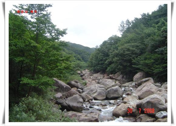 혹시 동행할 사람이 있나 힐끔힐끔 뒤돌아보며 대원사 계곡에 들어서니 계곡에는 옛날 태풍 매미의 아픈 추억을 잊었는지 휴가를 즐기기 위해 나온 사람들로 꽉 들어 차 있습니다.