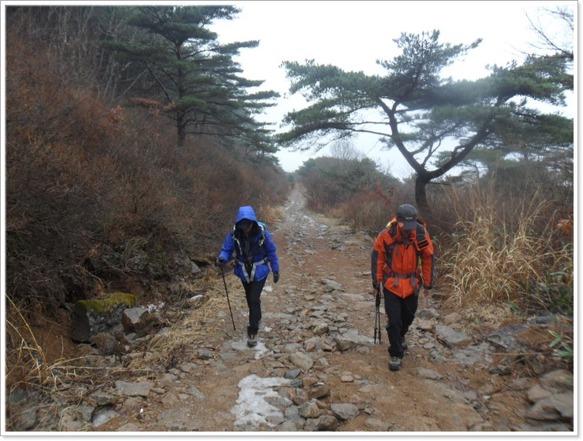 팔랑치를 넘어서고부터는 등로에 약간의 눈이 남아 그나마 위로가 됩니다. 눈이라기 보다는 등산객의 발에 밟혀 다져진 얼음이라고 생각하면 되겠고 엄청 미끄럽습니다. 부운치를 지나고 세동치로 계속 발걸음을 이동합니다. 세동치에서 라면을 끓이기로 했는데 세동치 0.2Km가 남았다는 이정목이 너무 야속합니다. 하마 나올란가? 금방 나오겠지? 사람 속을 있는 대로 다 태우고 나서야 세동치가 삼거리가 나옵니다.