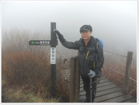 바래봉 정상에 올라서고 나서 운무가 살짝 걷히더니 지리의 주능선과 서북능선을 감질나게 힐끔 보여주고 이후로는 한번도 그 아름다운 속살을 보여주지 않았습니다. 봄을 재촉하는 봄비를 맞아가며 5월이면 바래봉 철쭉으로 유명한 팔랑치로 발길을 옮깁니다. 눈 구경 시켜주려고 바래봉으로 데리고 왔는데 뻘 밭을 헤매게 해서 진호, 인연 두 친구에게 미안합니다. 그렇지만 어쩔 수가 없습니다. 나도 이 정도로 심각할 줄은 꿈에도 몰랐으니까요. 3월 달에 눈 구경하겠다는 진호 친구 저가 잘 못된 거지 데리고 온 내가 잘못인가요?