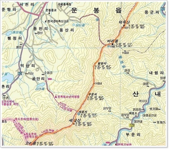 용산재 허브주차장(8:34)→바래봉(10:27)→세동치(13:19)→전북학생교육원(15:00)