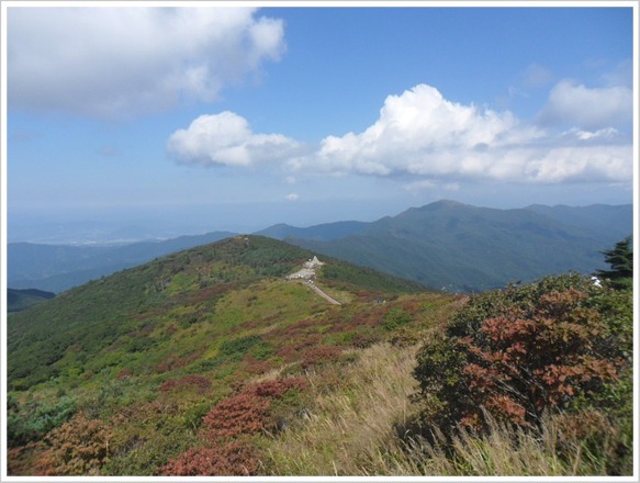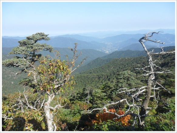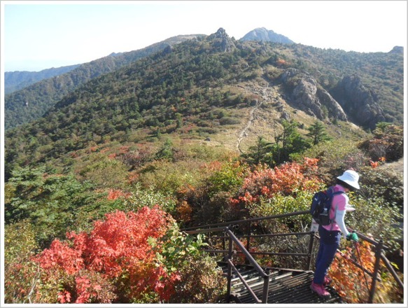 어제 저녁 남겨둔 김치랑 삼겹살 몽땅 넣고 된장 풀고 팔팔 끓이다 마지막으로 국민조미료 라면 수프를 투입하면 세계에서 가장 맛난 김치찌개가 완성됩니다. 세석대피소에서 김치찌개와 누룽지로 아침식사를 해결하고 촛대봉을 넘습니다. 연하봉에도 천상화원은 펼쳐져 있습니다. 지리산 단풍잎이 붉은 색깔로 살짝 옷을 갈아입고 있습니다.