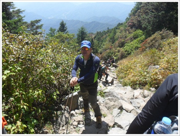 중산리로 내려가다 천왕봉 바로 아래 가파른 돌계단에서 경만을 만납니다. 지인을 데리고 천왕봉을 찾았는데 지인이 초보 산 꾼이라 산행의 맛이 그다지 나지 않는답니다. 그래도 지리를 찾은 것이 어디입니까?