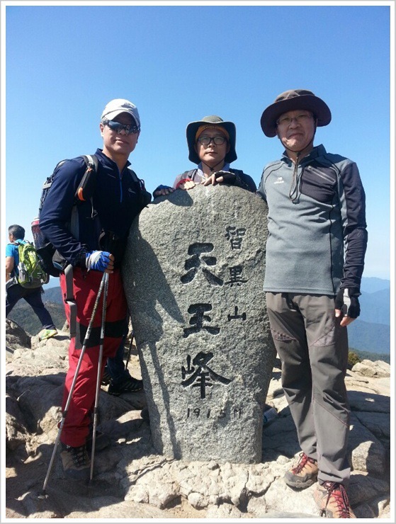 천왕봉에 사람들로 넘쳐납니다. 정상석을 한번 안아볼라치면 족히 5분을 넘게 줄을 서서 기다려야만 합니다. 지리산 천왕봉에 힘들게 올라왔으니 스마트폰 인증샷을 찍어 지인들에게 자랑을 쳐야 하고 SNS에 올려 기록을 남겨야 하기에 개인, 쌍쌍, 단체 등 여러 형태의 사진들이 필요한 모양입니다.