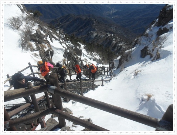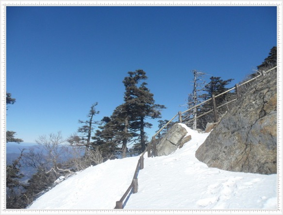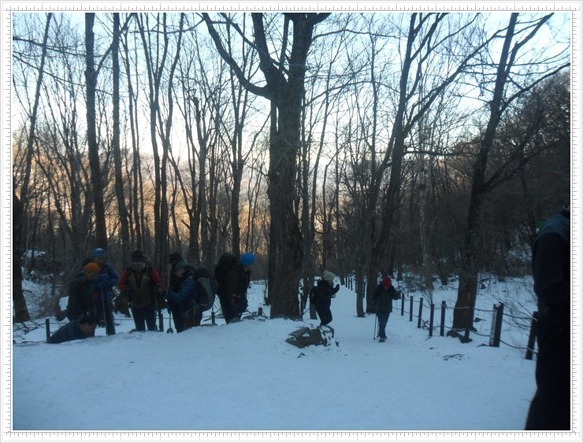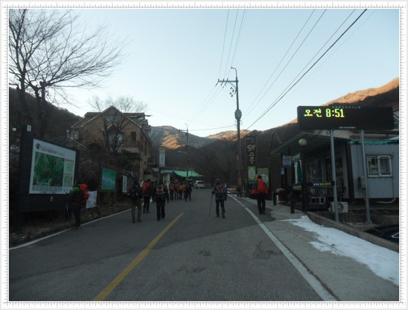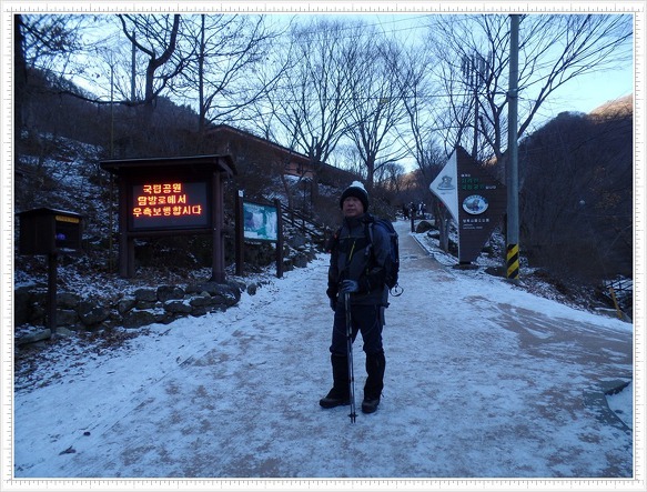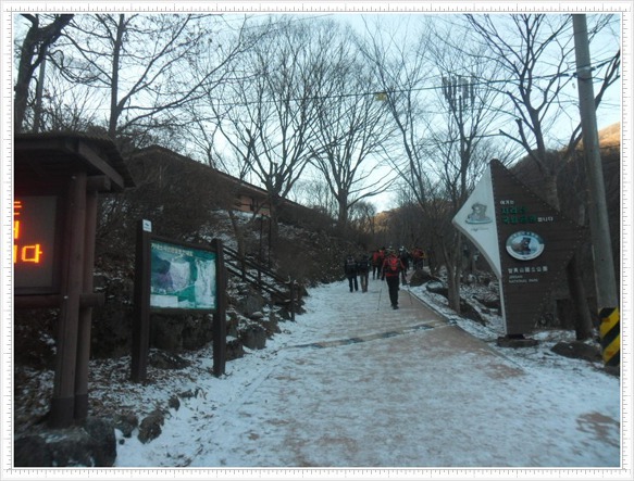 백무동의 길바닥에 눈가루가 살짝 흩뿌려져 있습니다. 올 겨울은 말이 겨울이지 기온이 너무 온화하여 완전 겨울 실종입니다. 굳이 쉬지 않더라도 장터목대피소까지 그냥 올라갈 수 있습니다. 대한민국의 아웃도어 열풍으로 지리산 천왕봉마저도 동네 뒷동산이 되어버린 느낌입니다.