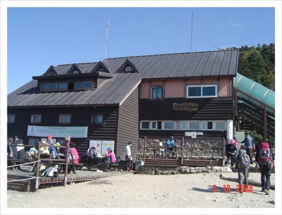걸어서 왔을까? 버스를 타고 왔을까? 로타리 산장에는 인산인해입니다. 그 이후로 앞 사람 궁뎅이만 쳐다보며 천왕봉을 올랐습니다.