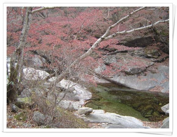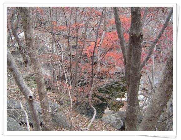 지금부터는 완만한 계곡을 따라 펼쳐져 있는 산수화와 크고 작은 폭포, 물이 너무 맑아 깊이를 도저히 가늠할 수 없는 각종 소들을 감상하며 내려가니 용과 뱀, 소와 관계되는 많은 전설을 가진 제승대(12:20), 병풍소(12:40), 병소(12:50), 탁용소(13:15)등이 나옵니다.